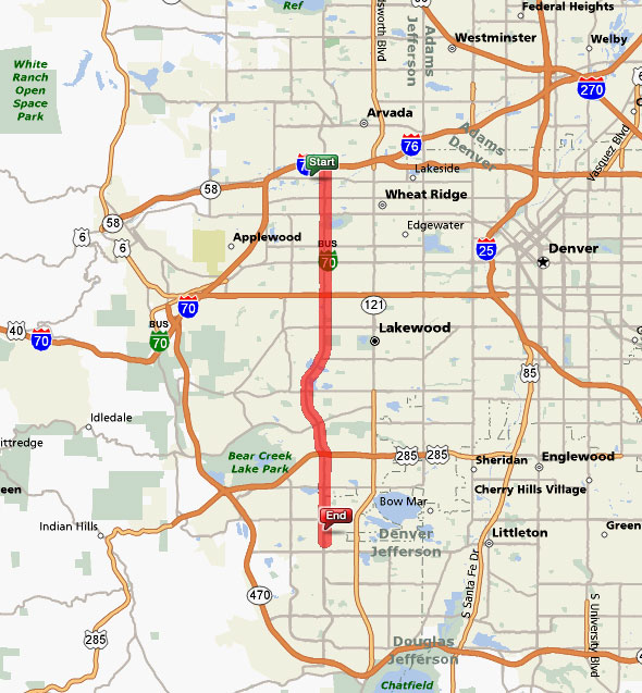 End at 5344 S Kipling Pkwy